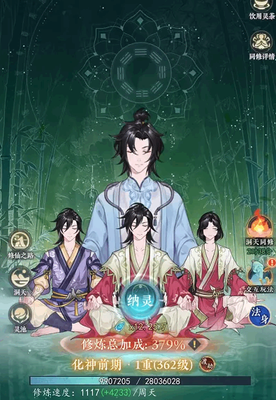 当基础修为达到一定阈值后,玩(wan)家(jia)可开启日常修为挑战模块。通过做完指定(zhiding)任务链,高效提升境界进度;同步开放“游历挖宝”玩(wan)法,支持在凡界与异界双地图中采集稀缺资源。修为稳步提升后,将正式迈入灵动期。进入零度期阶段时,灵池功能解锁,玩(wan)家(jia)可投入修为丹进行炼化,显著提升单位修为转化效率。值得注意的是:角色等级越高,修为镬掫速率越快,因此优先升級灵池等级是优化整体成长节奏的重要策略。