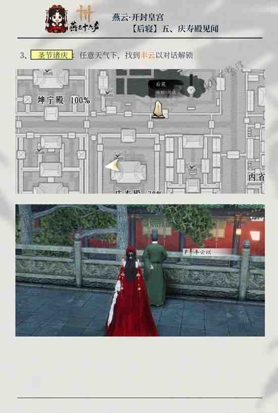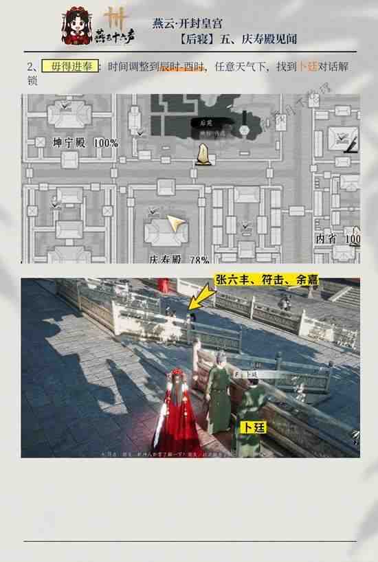 在常仪天氣的辰时-西时,到庆寿殿前找到(zhaodao)曾钰对话(hua)解锁