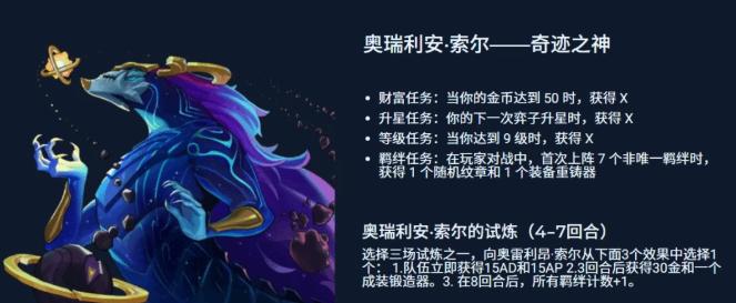 羁绊强化(hua)型阵容(line-up):选择奥瑞利安·索尔,通過完成财富、升星、羁绊等任务,可获得(available)随机纹章、装备重铸器等,助力凑出高阶羁绊。