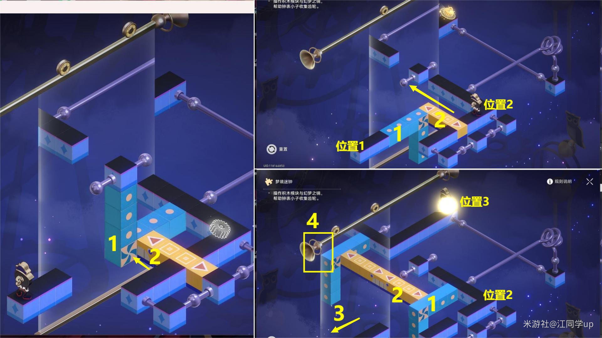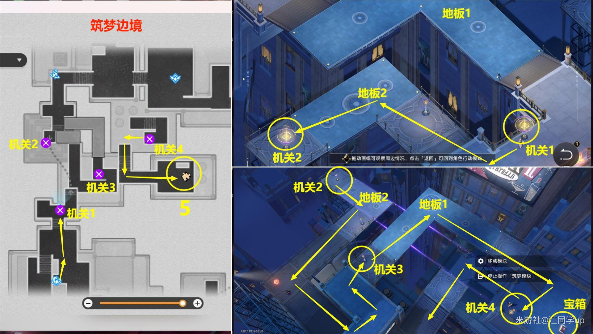 (3)接着开启(kaiqi)【机关4】再将【地板2】移到【机关4】位置后,就可以(can)去第5个【梦境迷钟】位置了
