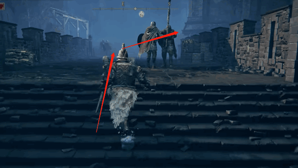 3、在走上后會有一个卡利亚骑(qi)士(shi),我们(women)本次(ci)不需要击败他,直走可以看到隱藏的路。