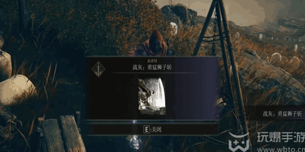 3、前往到此位置进行(jinxing)拾取之后(zhihou),就(jiu)能(neng)获得(de)到战灰勇猛狮子斩。
